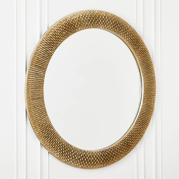 Must be seen in person…or just trust us, this mirror is a show-stopper. Featuring a series of extruding disks, it is loaded with visual texture and intriguing dimension.