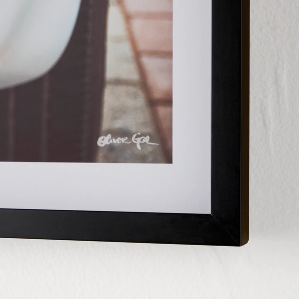 - Glossy art print mounted within a high gloss black wood shadowbox frame and set under plexiglass.