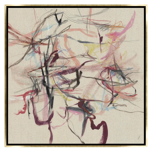 This impressive abstraction from artist Kelly O’Neal adds a modern note and hint of color to your wall. Printed on canvas, this piece is displayed in a gold floater frame.