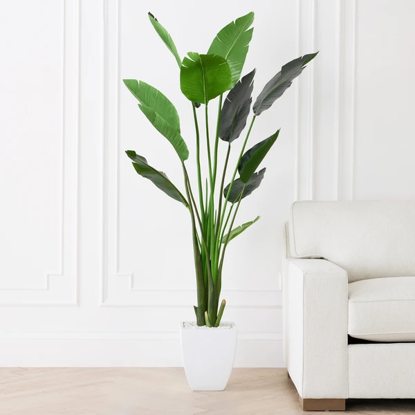 Bring a touch of the tropics into your home with our faux Palm Tree.Nestled inside a contemporary pot, graceful stalks unfurl into a brilliantdisplay of lush, fanlike leaves. Authentic to the eye, our palm willinstantly transform your space into a botanical paradise.