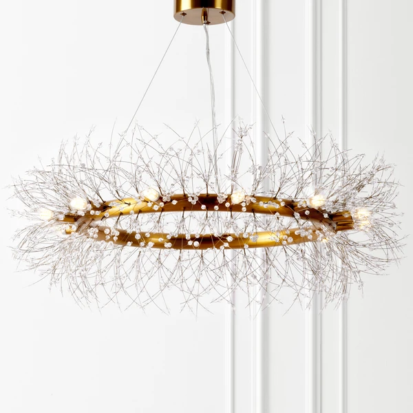 Allow us to be crystal clear. Sophistication meets whimsy in this ethereal secret-garden-inspired crystal chandelier, aptly named Fleur. A wreath of light-reflecting crystal beads appears to float in thin air thanks to artful steel suspension cables.