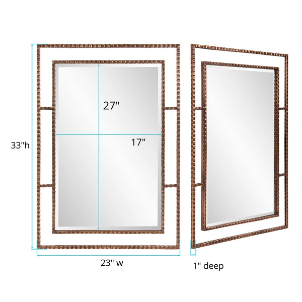 A rich antique gold finish sets the stage for the Gaven Wall Mirror to shine. The thin profile of the rebar textured iron metal frame allows for the mirror itself to become the focus. D-rings are affixed to the back of the mirror so it is ready to hang right out of the box in either a horizontal or vertical orientation!