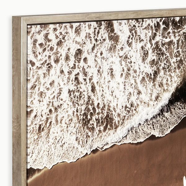 Gold Coast is a gallery-wrapped canvas set in a natural wood tone floater frame with champagne edges.