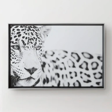 A spirited addition to any space, this image of a majestic leopard from photographer Staffan Widstrand is printed on paper and set off with a black-and-silver frame.