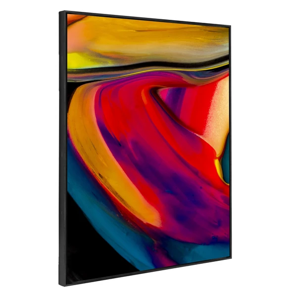 Full of vibrant color and movement, this abstract image from photographer Addison Jones is printed on canvas with an image brush gel finish for added texture and set off with a black floater frame.