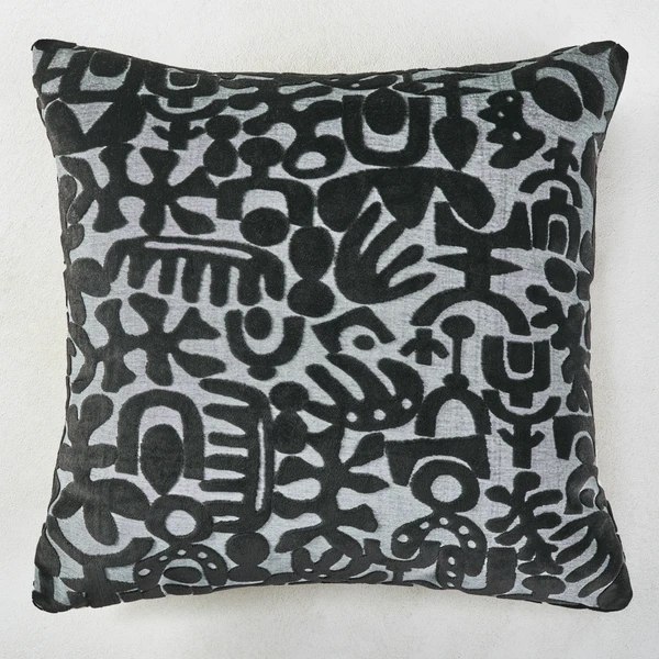 The 20″ Baraka Pillow is designed by Nikki Chu and patterned with a tribal motif. You’ll love the softness of the velvet as well as the impact this throw pillow makes in your room. Available in black and ivory.