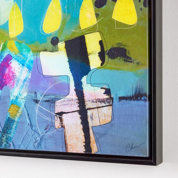 Looking for a vibrant and colorful piece for your home gallery? You’ve found it in Nikki Chu’s Detailed Vision. Featuring a sheen coat for a high-gloss appearance, this design adds loads of interest to any space. Framed in black, this piece is set to hang vertically or horizontally.