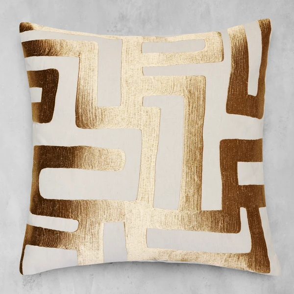 The geometric print of the Mandala Pillow adds a modern flair to the room. Designed by Nikki Chu, this 22″ throw pillow features an embroidered pattern and metallic thread on the front side and is solid on the back. Removable insert is included. A Z Gallerie exclusive, this pillow is available in black or gold.