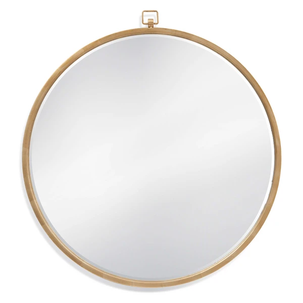 Our Royal Mirror has a gold leaf finish and is accented with a sleek pocket watch bow detail.