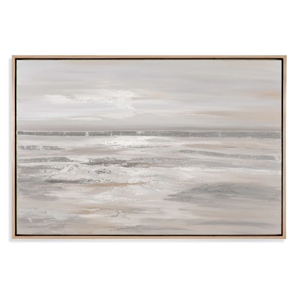 Our Sea Gaze painting on canvas is a serene picture of a hauntingly beautiful silver landscape. Cool greys and blues provide a relaxing element to any space in need of stunning allure.