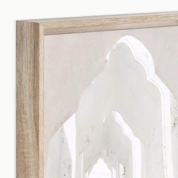 Stairway Up is a framed graphic under glass with a warm blonde frame.
