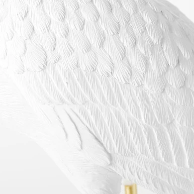 Perched on a golden plinth, this crane sculpture makes a stunning addition to any shelf or mantel.