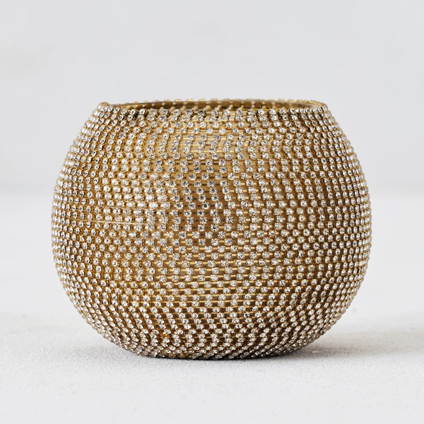 Create a magical atmosphere with our shimmering Victoria Candle. Each gold or silver holder is adorned in a plethora of faceted glass jewels that will dance in the candlelight. Cluster and combine for a dazzling two-toned tabletop design.