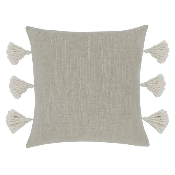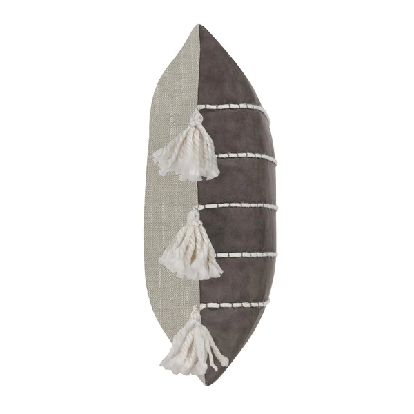 Classic with a dash of playfulness, our Zeek faux leather pillow features classic stripes accented with plush tassels. Hand embroidery gives Zeek an artisan aesthetic while its neutral hues and timeless design that suits any décor